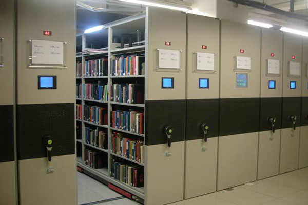 (9)防倒裝置:安置在導軌上面,用來穩固密集架,防止密集架傾倒。